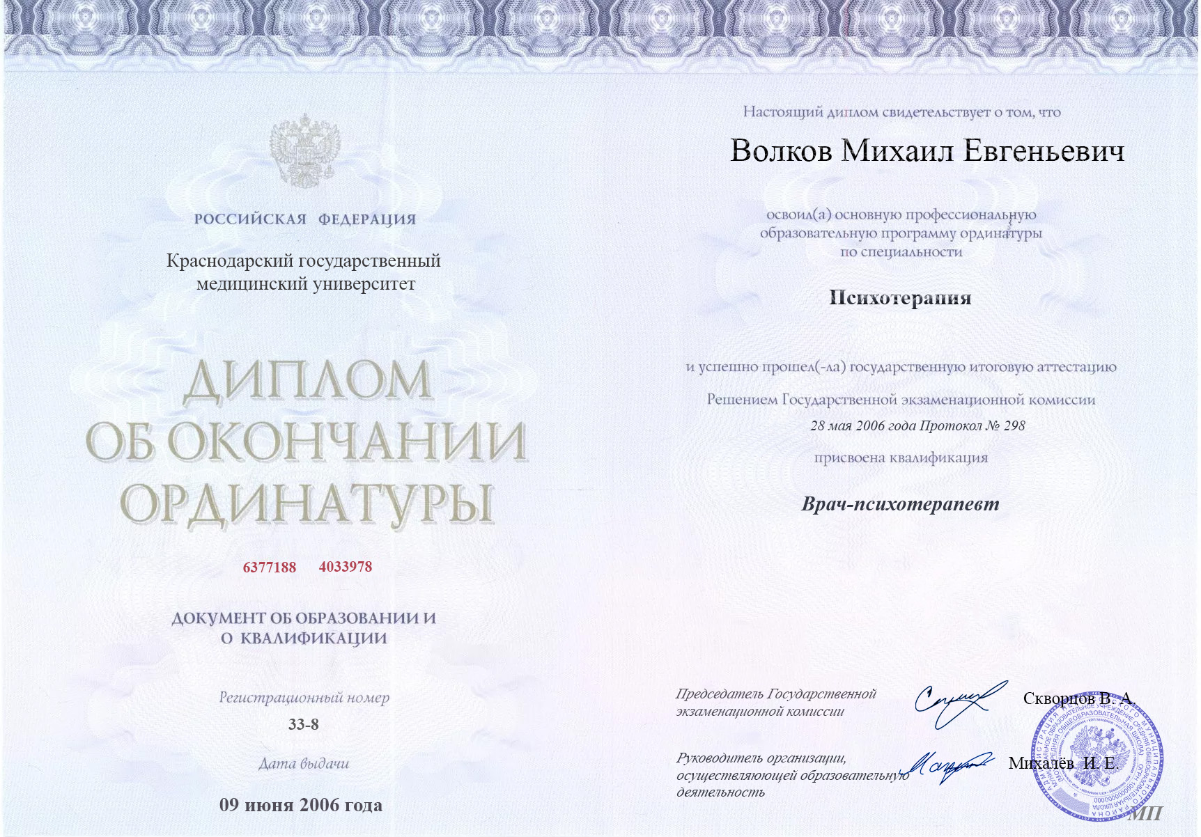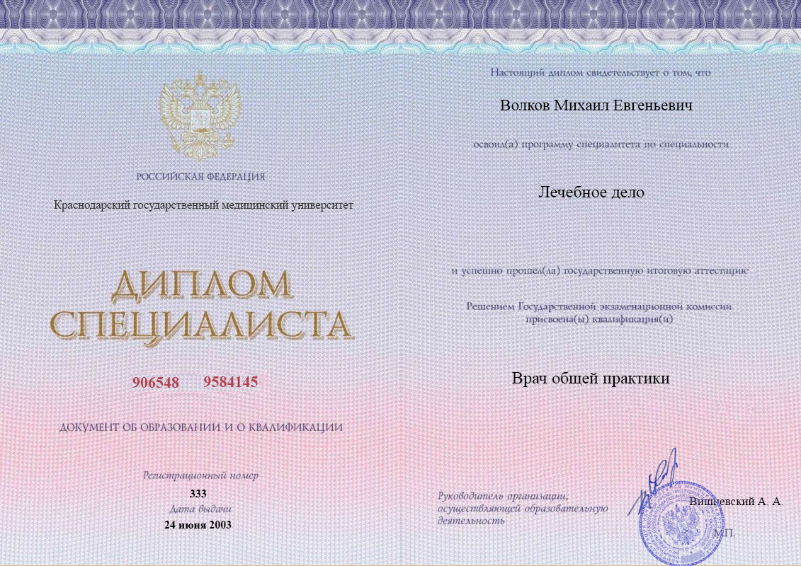 ВУЗ: Краснодарский государственный медицинский университет, 2003 г.